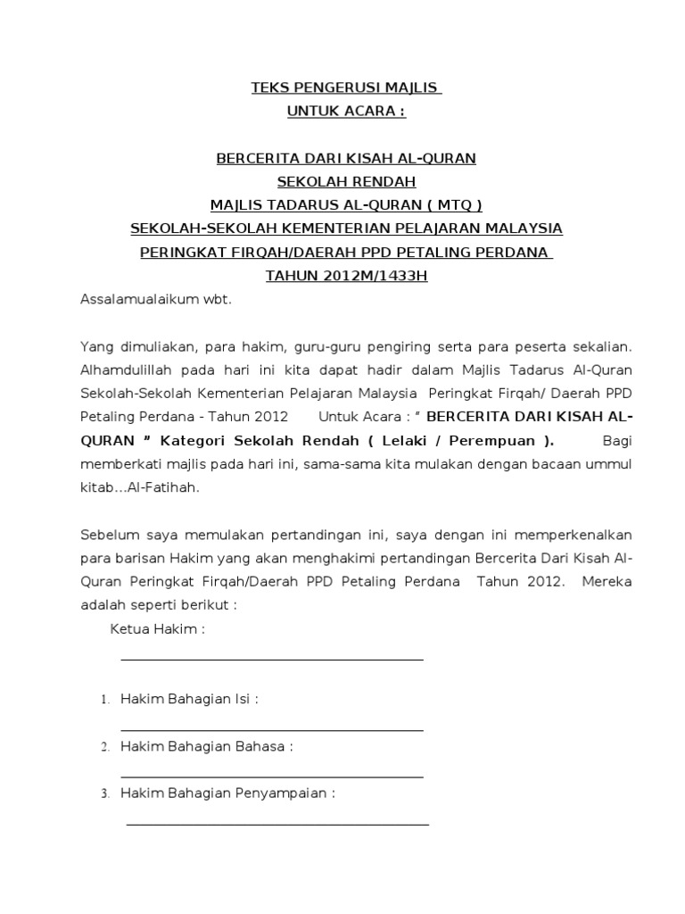 Teks Juru Acara Mtq Firqahdaerah 2012 Pdf